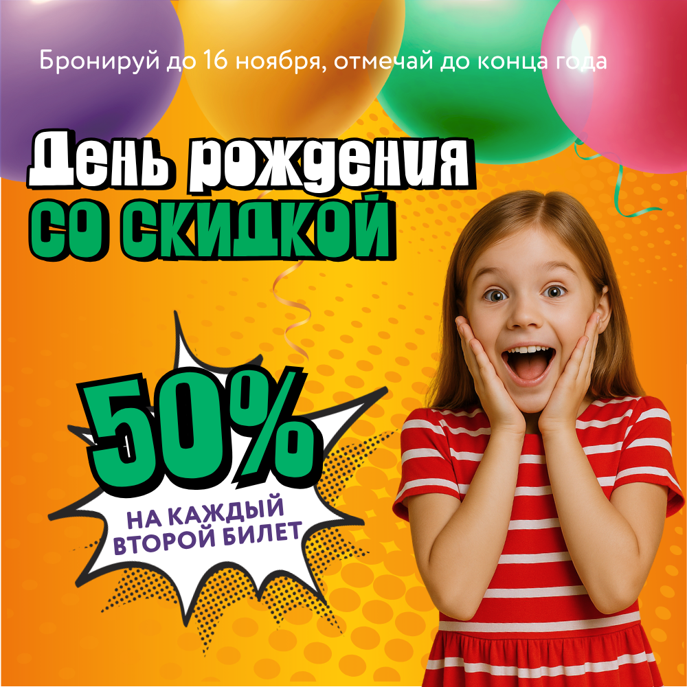 Бронируй банкет до 16 ноября 2025 — и получай -50% на каждый второй детский билет!