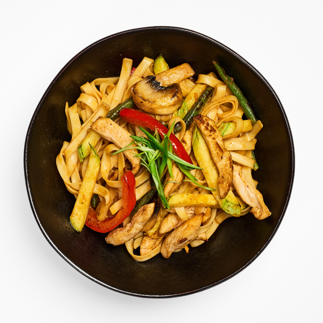 на бульоне том ям с кокосовым молоком, креветками, кальмарами и рисом